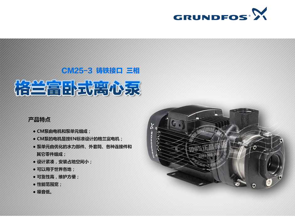 格兰富 GRUNDFOS CM5-3 A-R-A-E-AVBE FAAN 卧式离心泵 卧式泵 循环泵 三相380V 650W 进口Rp1-1/4内螺纹 出口Rp1内螺纹 -20~90℃水 铸铁接口